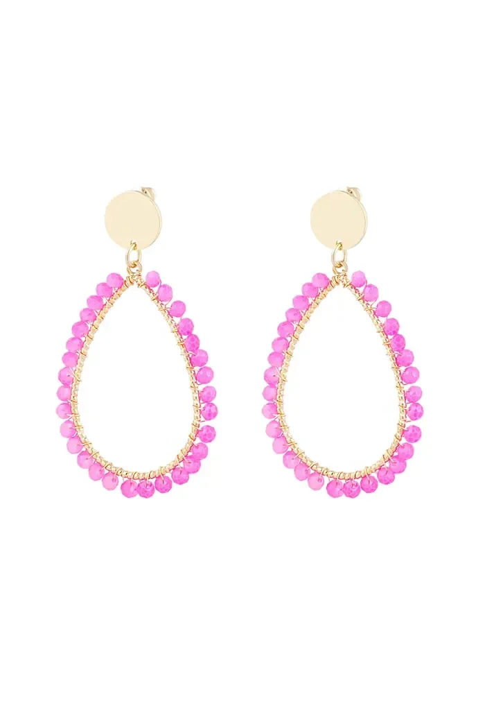 Hoe leuk zijn deze oorbellen voor de lente en zomer?! De afmeting van de oorbellen is 3.5 bij 6 centimeter. En het leuke is, we hebben verschillende kleuren van deze oorbellen.